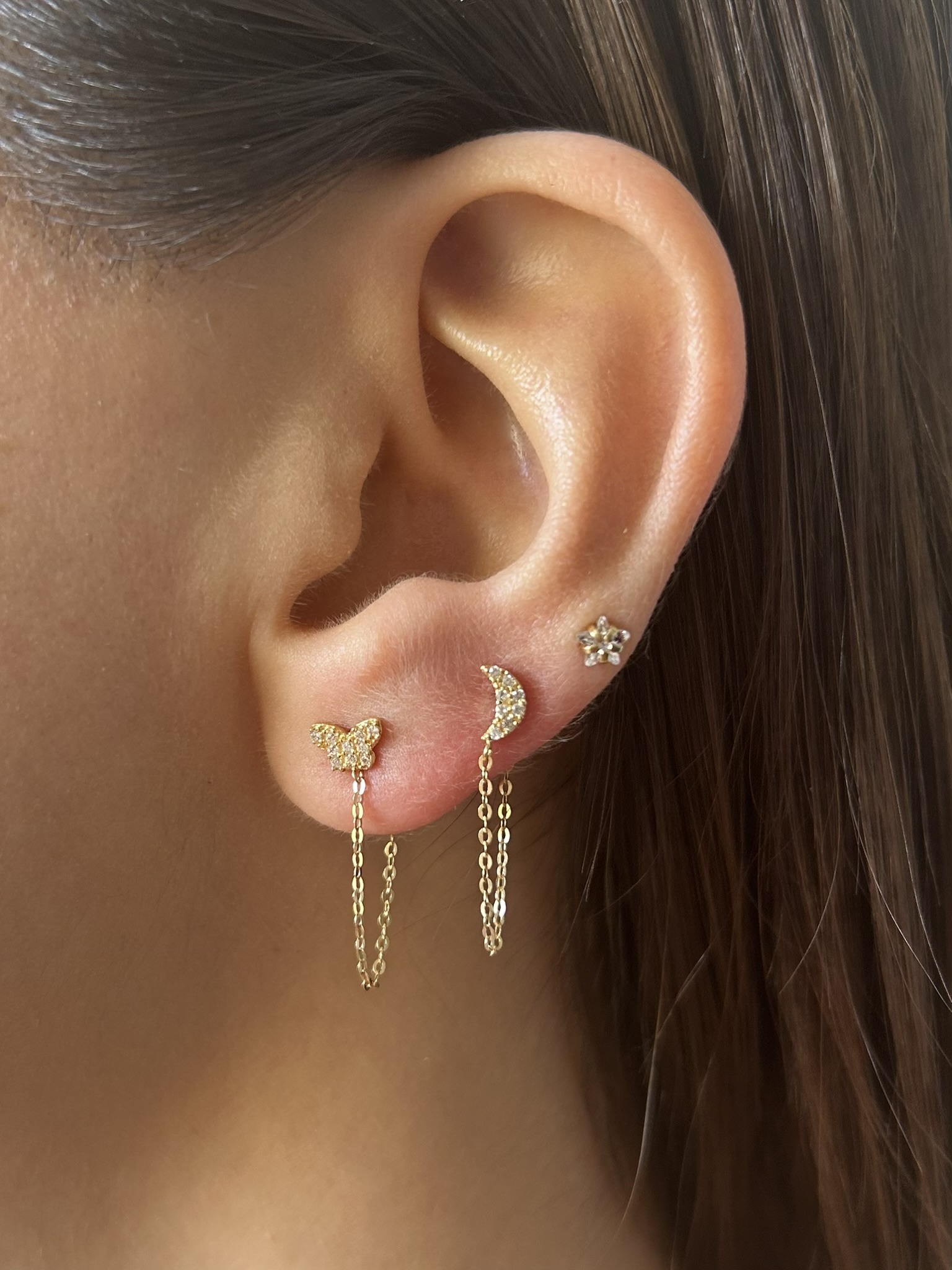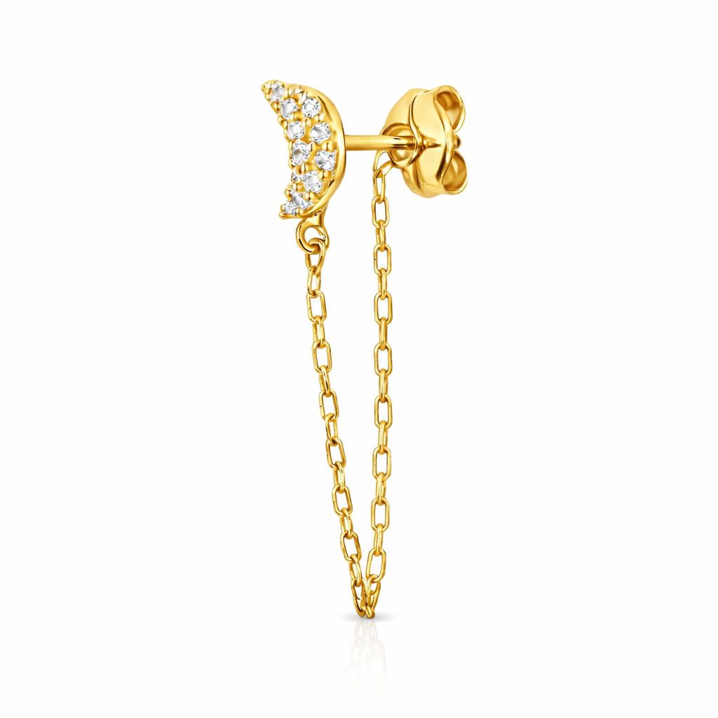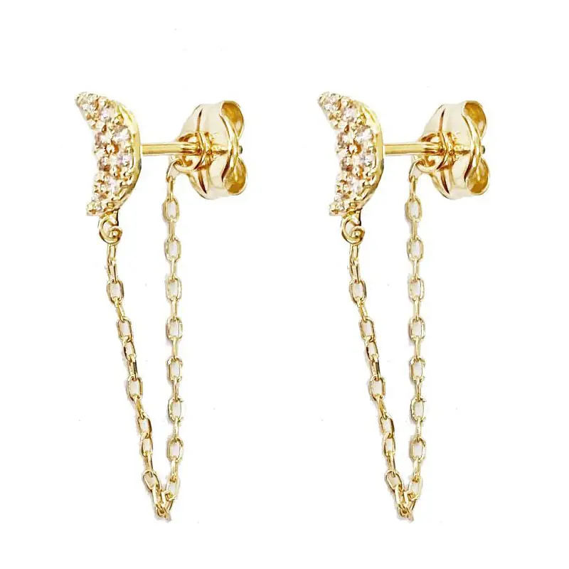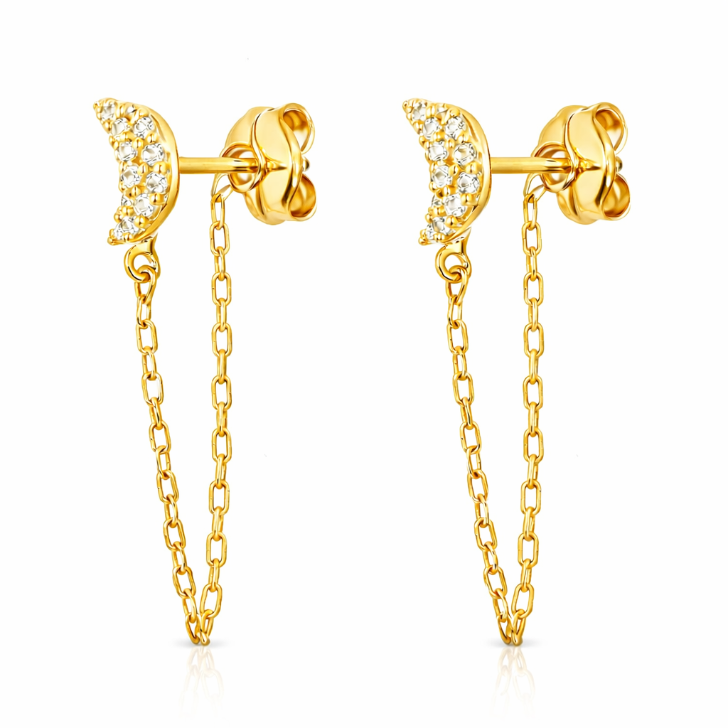 Aros de Oro Italiano 18 quilates – Lunas con Cadenas y Circones Brillantes