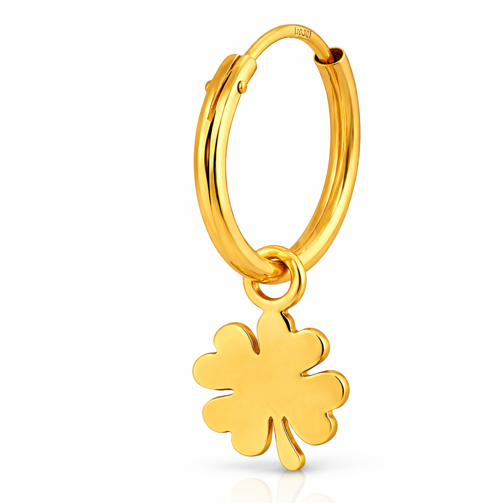 - Diseño: Argolla 12mm con trébol de 4 hojas colgante