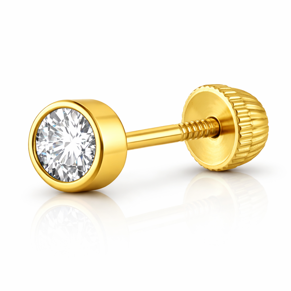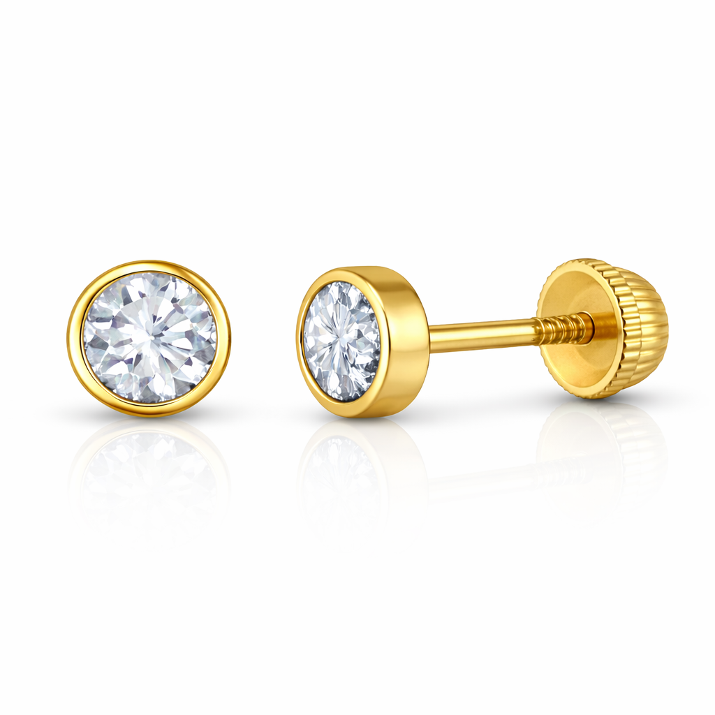 Elaborados en oro italiano de 18 quilates, presentan un diseño circular de líneas perfectas que enmarca en su interior un circón de 4mm bordeado por un delicado perfil de oro. Este detalle, característico de la orfebrería sarda-italiana, crea un efecto de profundidad y luz que distingue la pieza de un simple arito.
