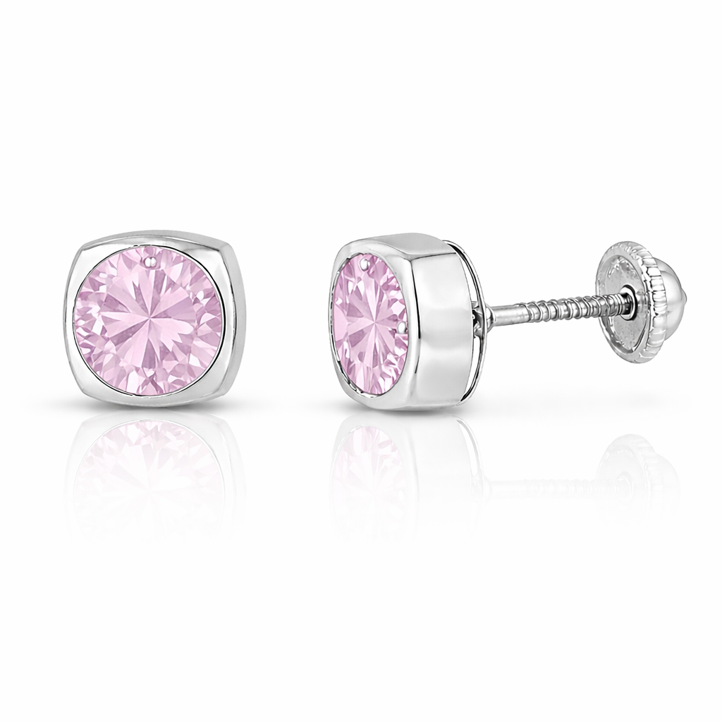Elaborados en oro blanco italiano de 18 quilates, la estructura cuadrada de estos aritos ofrece un contraste visual interesante con la forma orgánica del rostro, creando un efecto de modernidad y sofisticación que los distingue de los aritos circulares convencionales. El circón de 4mm, sostenido en grifas de precisión artesanal, queda expuesto en toda su luminosidad cristalina.