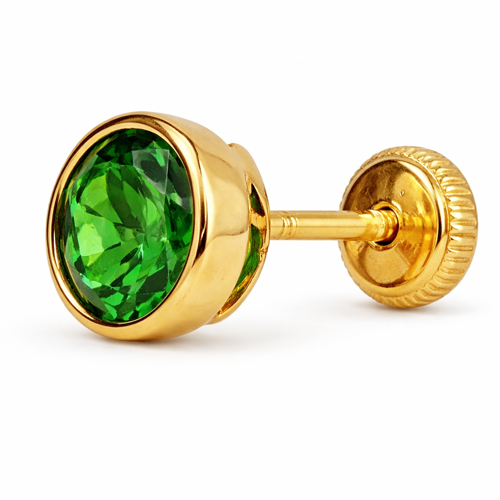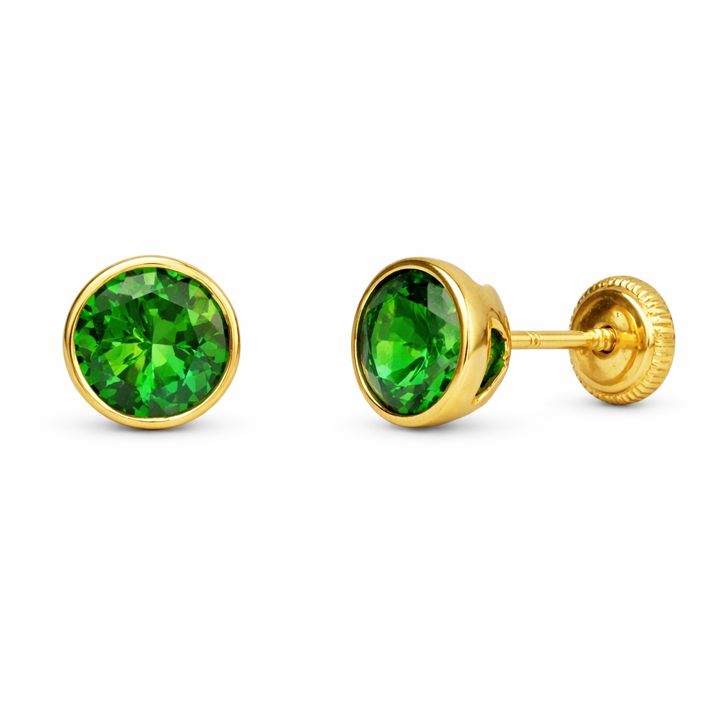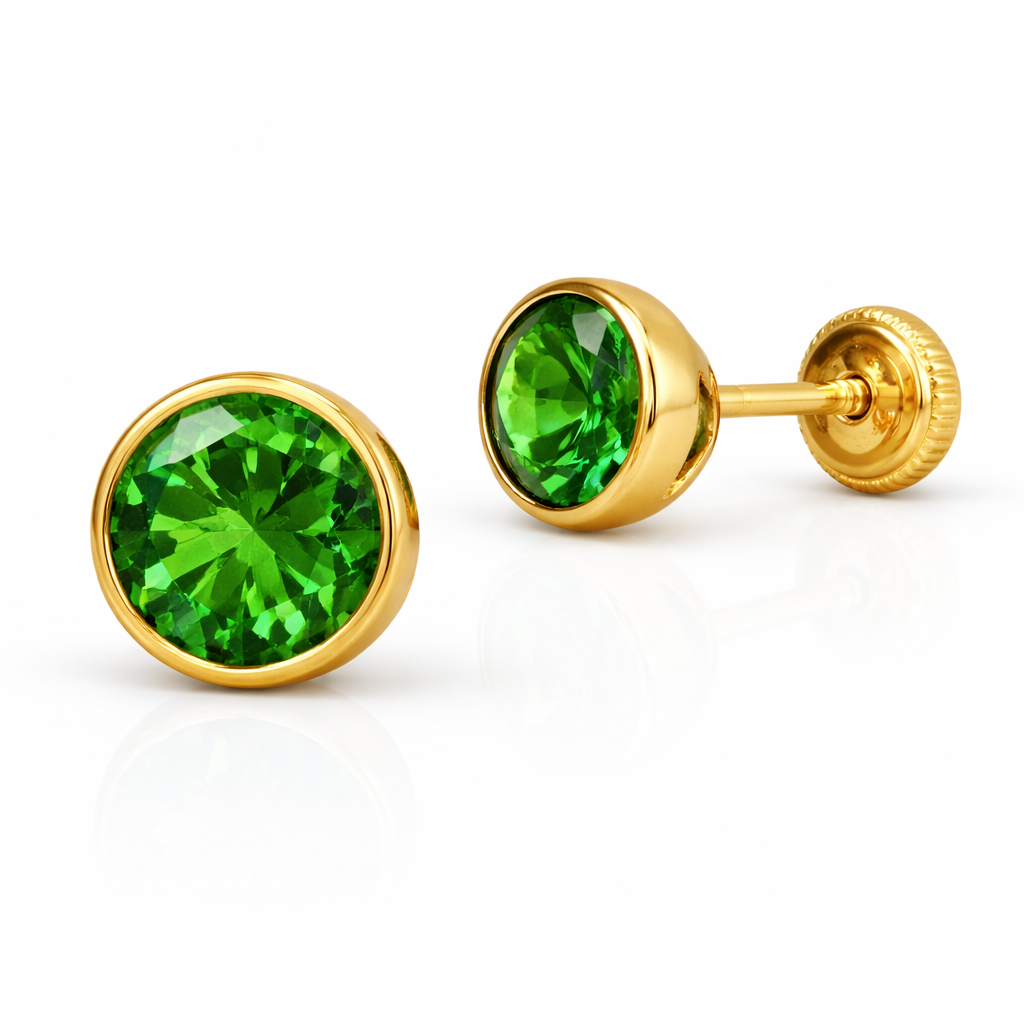 El tono verde de la esmeralda contrasta con el cálido brillo del oro amarillo de manera armoniosa, creando una combinación cromática que es tanto atemporal como contemporánea. Con un diámetro total de 6mm, su tamaño es el perfecto equilibrio entre presencia y discreción, siendo ideales para el uso diario o para ocasiones especiales.