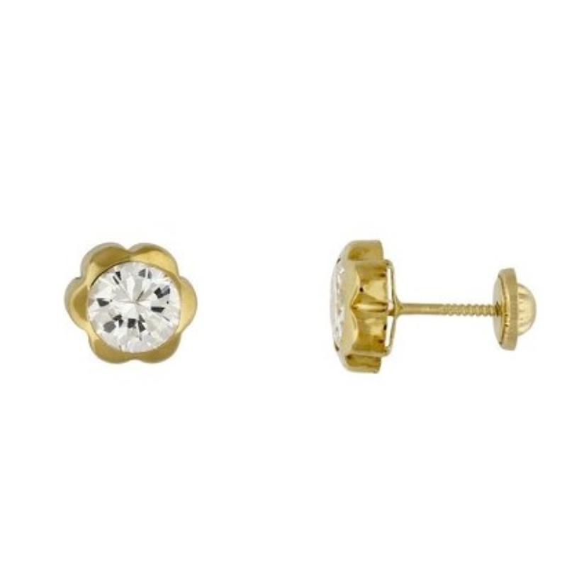 Clásicos aritos de oro 18 kilates en forma de corazón. Su circón en el interior es de 4mm. Una pieza ideal para niñas.