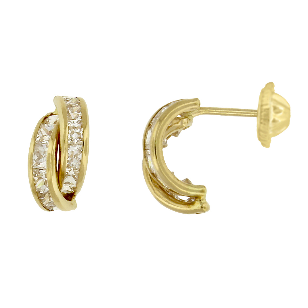 Aros carril doble de oro italiano de 18 quilates con finos circones italianos, una pieza sofisticada y luminosa para realzar cualquier look.