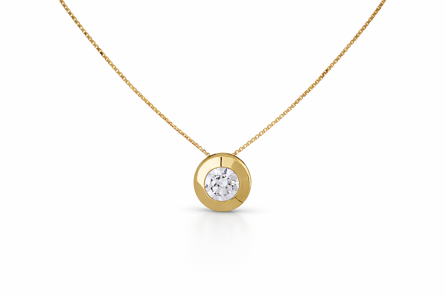 El Collar Punto de Luz es una joya esencial de elegancia discreta y refinada. Fabricado en oro italiano de 18 quilates amarillo, su diseño clásico se centra en un punto de luz cuidadosamente engastado en bisel, que realza la pureza del circón y potencia su brillo de forma armónica y equilibrada.