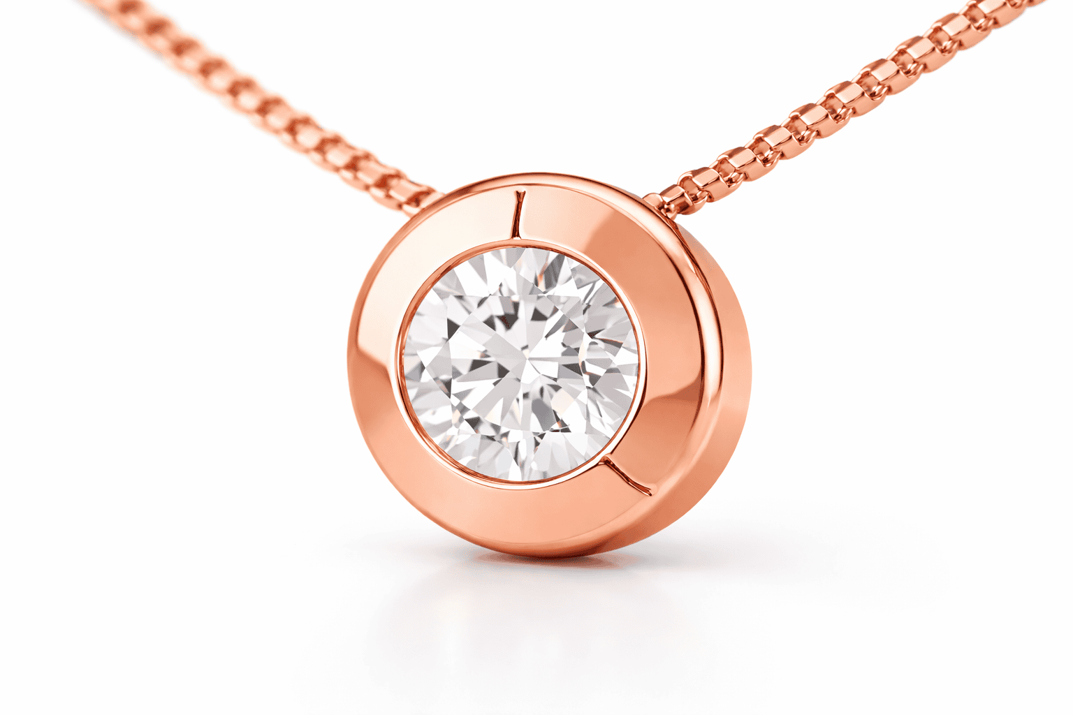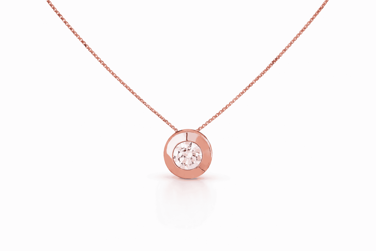 Su punto de luz central incorpora un circón brillante engastado en bisel, una montura que protege la piedra y permite una difusión armónica de la luz, logrando un destello delicado y constante. La tonalidad del oro rosa realza el brillo del circón y aporta una sensación de cercanía, sofisticación y modernidad.